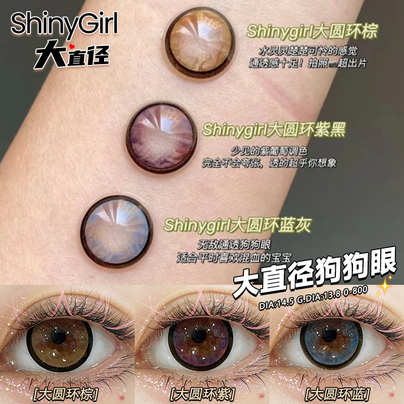 韩国Shinygirl美瞳半年抛大直径黑色棕色混血14.5狗狗眼旗舰店