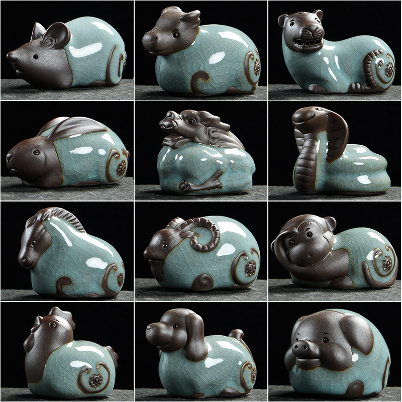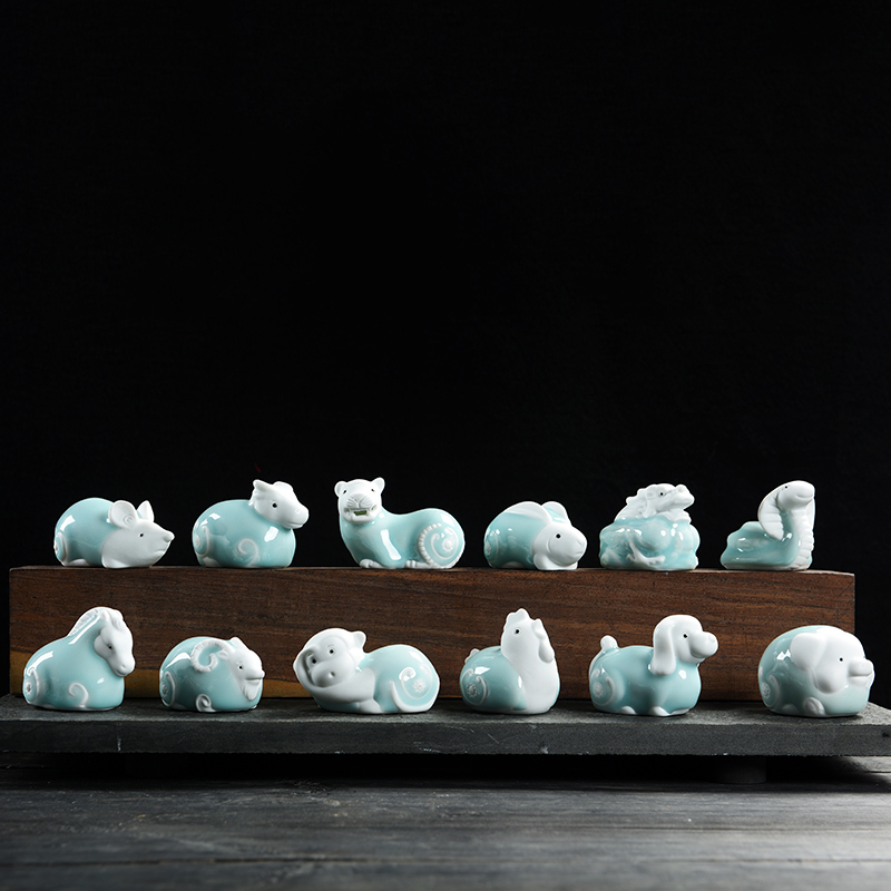 陶瓷十二生肖摆件全套饰品鼠牛虎兔龙蛇马羊猴鸡狗猪属相生日礼物