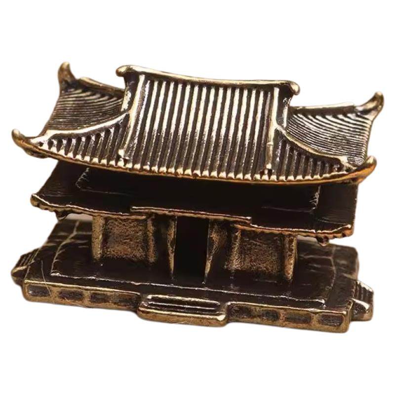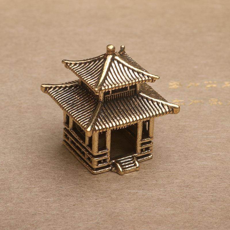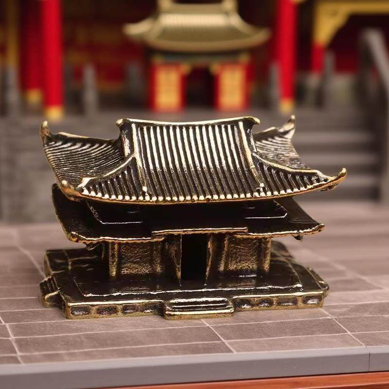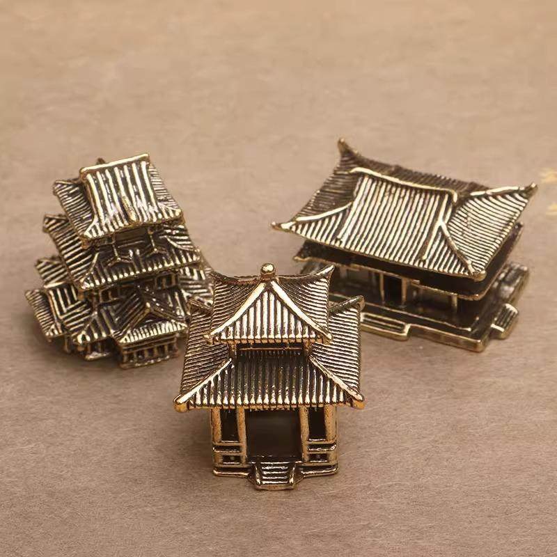 黄铜古楼客栈假山鱼缸造景创意摆件书房办公室立体宫殿摆件工艺品