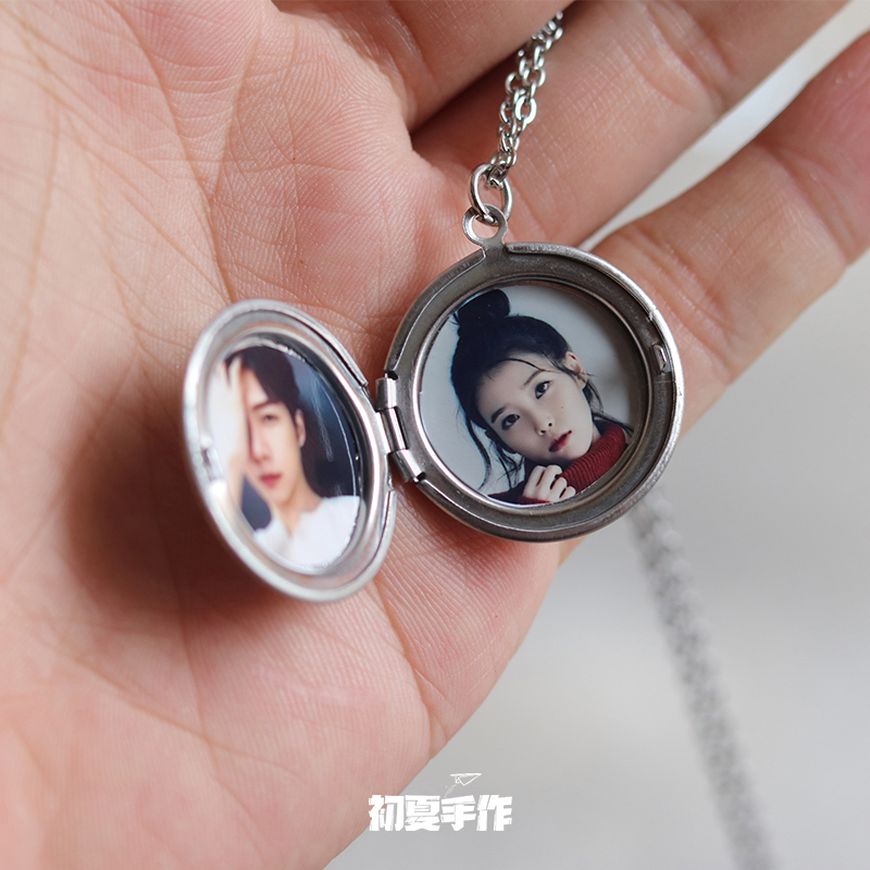 定制吊坠照片钛钢项链圆形翻盖花纹相盒男女情侣相片礼物纪念特别