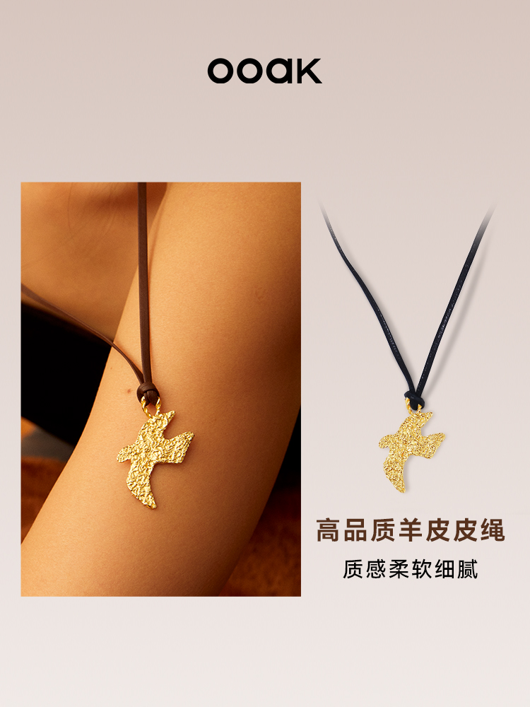 OOAK流金熔岩肌理飞鸟羊皮绳项链女毛衣链2024新款气质新中式