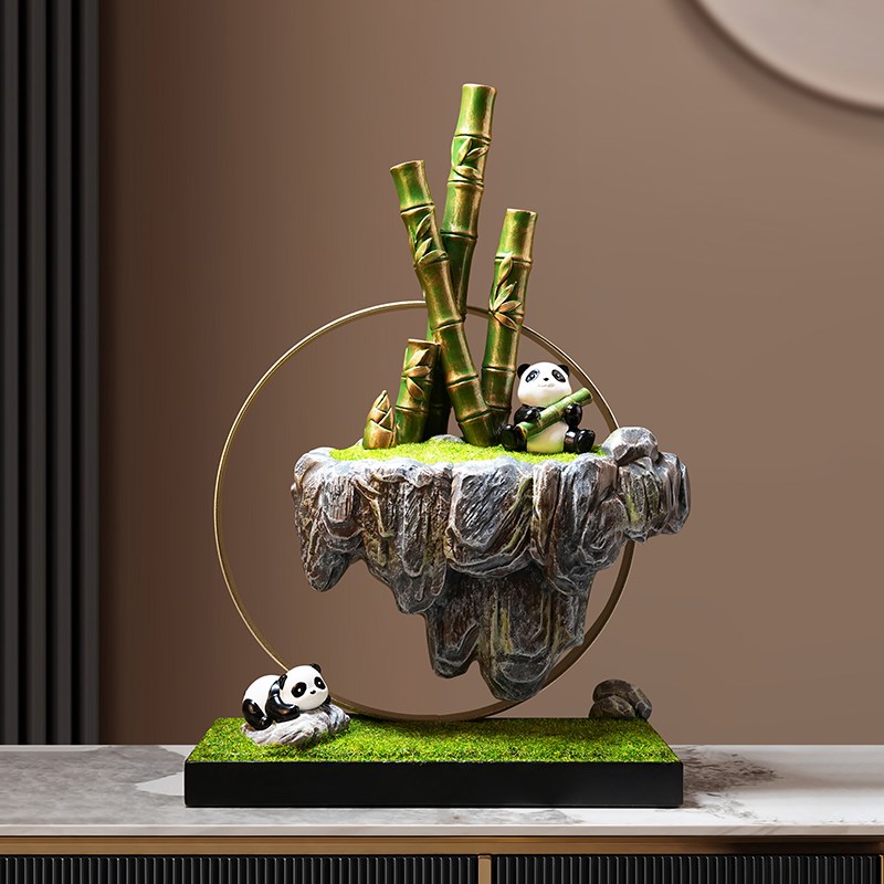 速发办浮节节高升熊猫桌面摆件客厅悬公室高级艺术装饰品乔迁新居