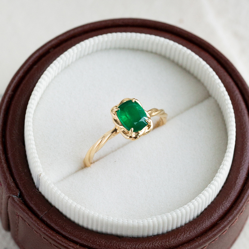 18K黄金Vivid Green1.8CT祖母绿戒指女轻奢彩宝仿翡翠925纯银女戒