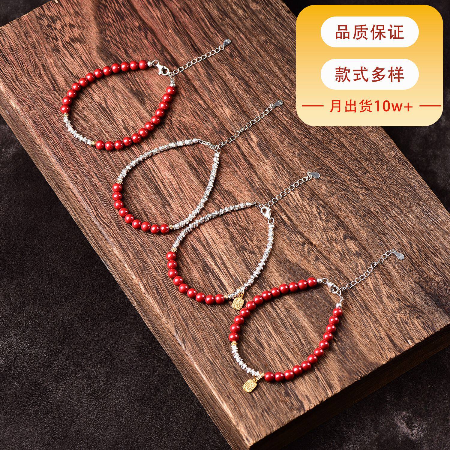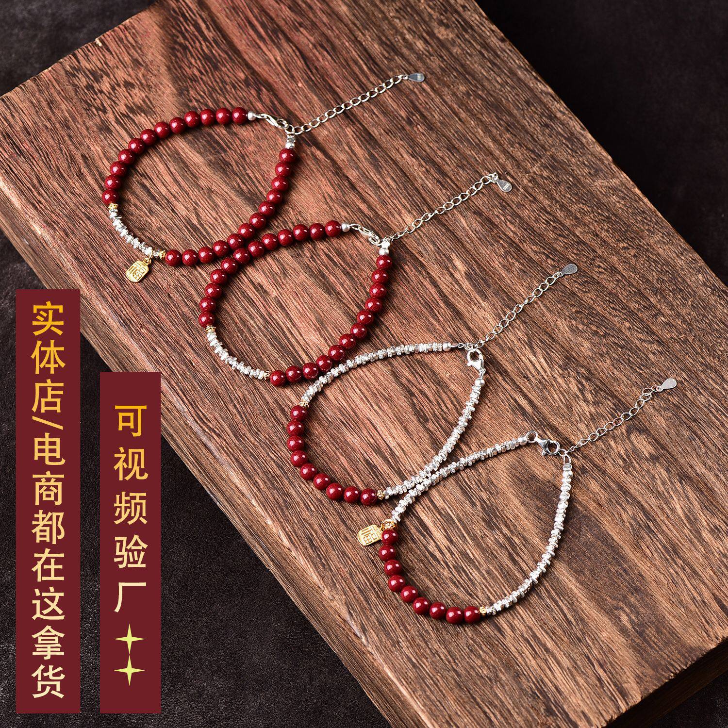 碎银几两2025蛇年本命年手链朱砂手串正品女款纯银红色送妈妈礼物
