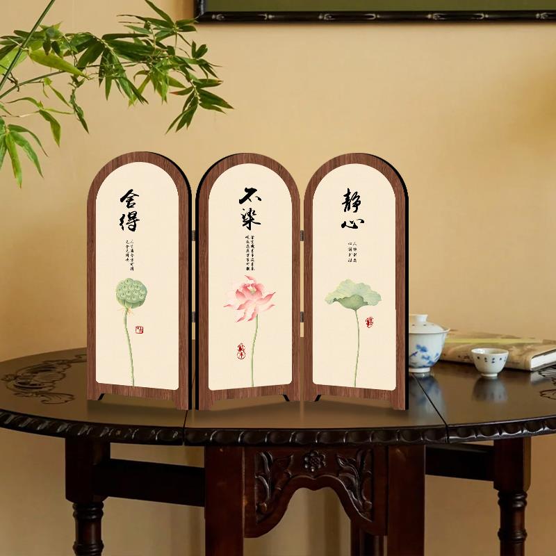 新中式荷花屏风摆件客厅高级感电视柜桌面装饰摆台创意餐边柜摆画
