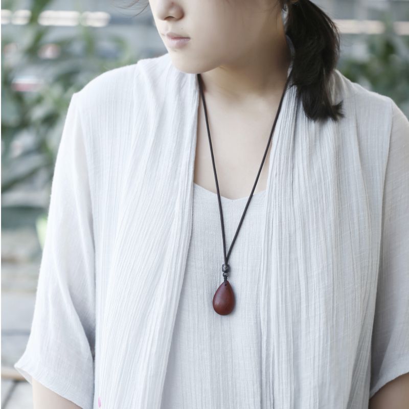 「上善」禅意水滴小叶紫檀沉香木吊坠男女项链项坠挂件毛衣链刻字