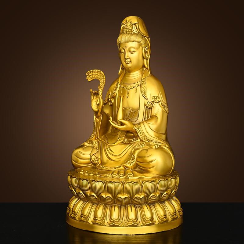 黄铜观音菩萨家用佛堂供奉柳枝观音坐莲花净瓶观世音菩萨像