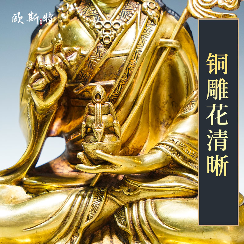 欧斯特莲花生大士铜像摆件 錾刻尼泊尔工艺铜鎏金莲花生大师雕像