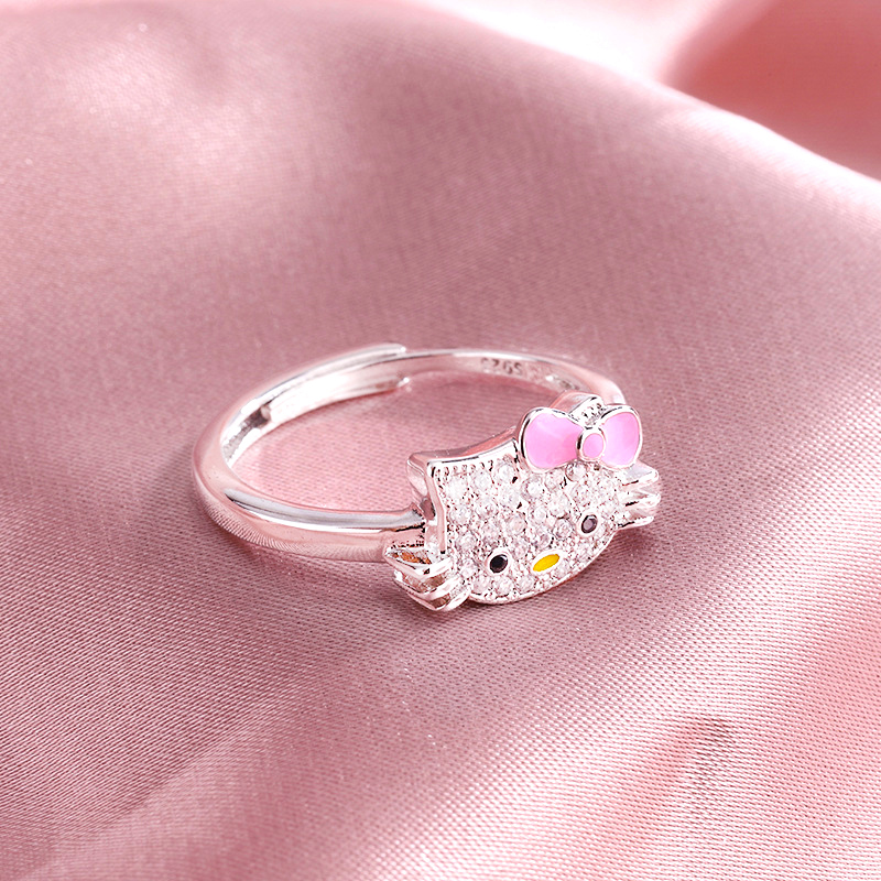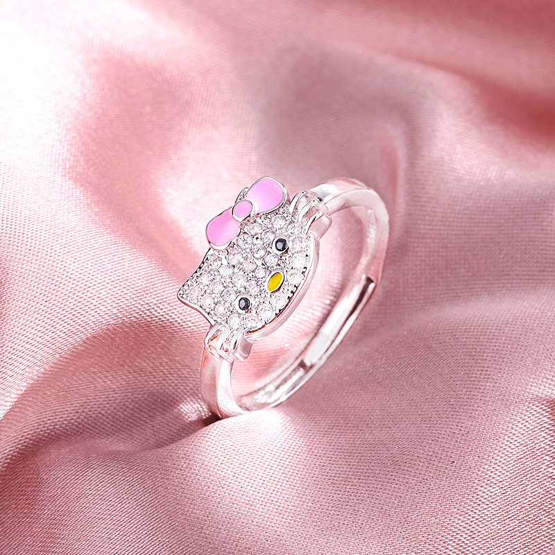 儿童仿纯银小戒指宝宝女孩公主卡通可爱钻石女孩玩具生日礼物戒子