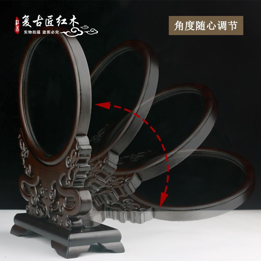 红木鸡翅大红酸枝浮雕花镂空实木火球架台插屏东瓶西镜中堂镜子屏