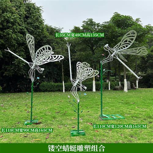 户外不锈钢镂空蜻蜓雕塑花园林仿真昆虫装饰品地产售楼部草坪摆件