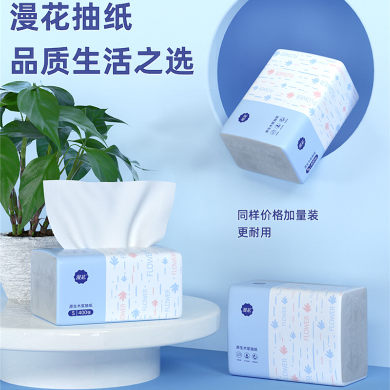 漫花抽纸400张5层加厚纸巾卫生纸面巾餐巾纸婴儿擦手用实惠装纸抽