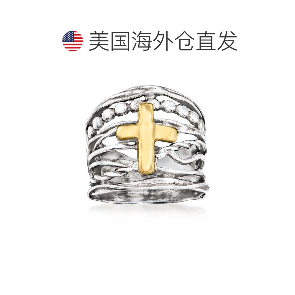 自营 Ross-Simons 纯银和 14kt 黄金多排交叉戒指 - 白色 美国奥