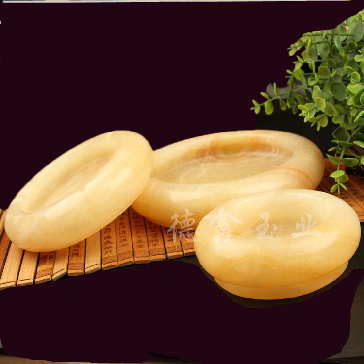 米黄玉烟灰缸 18cm玉石烟缸 跑江湖摆地摊 家居建材家装礼品刻字