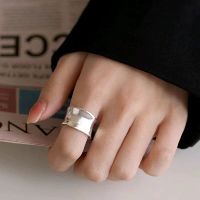 S925纯银通勤哑光开口戒指女可调节小众设计高级感食指戒情侣对戒
