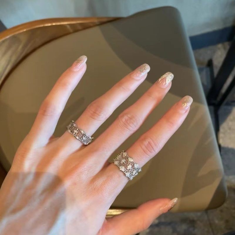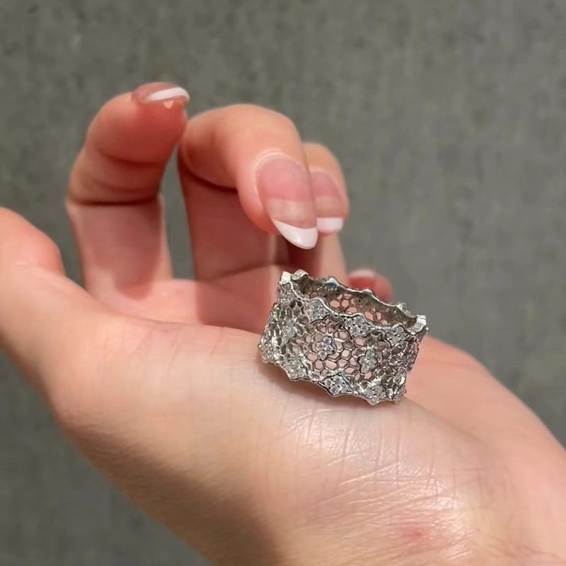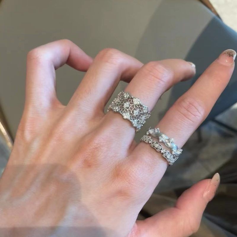 意大利中古拉丝蕾丝镂空戒指S925纯银布契风轻奢高级感满钻指环女