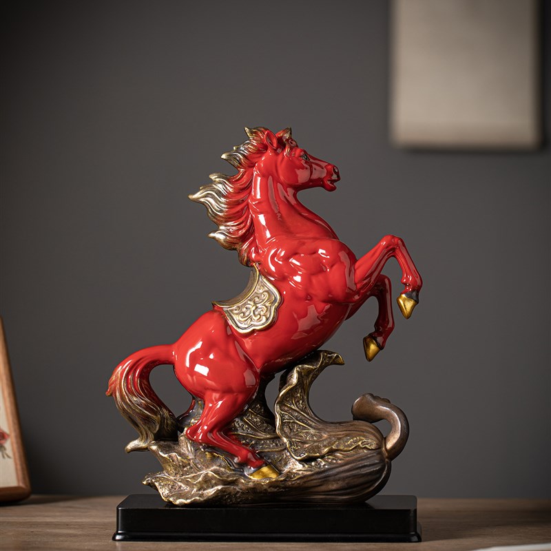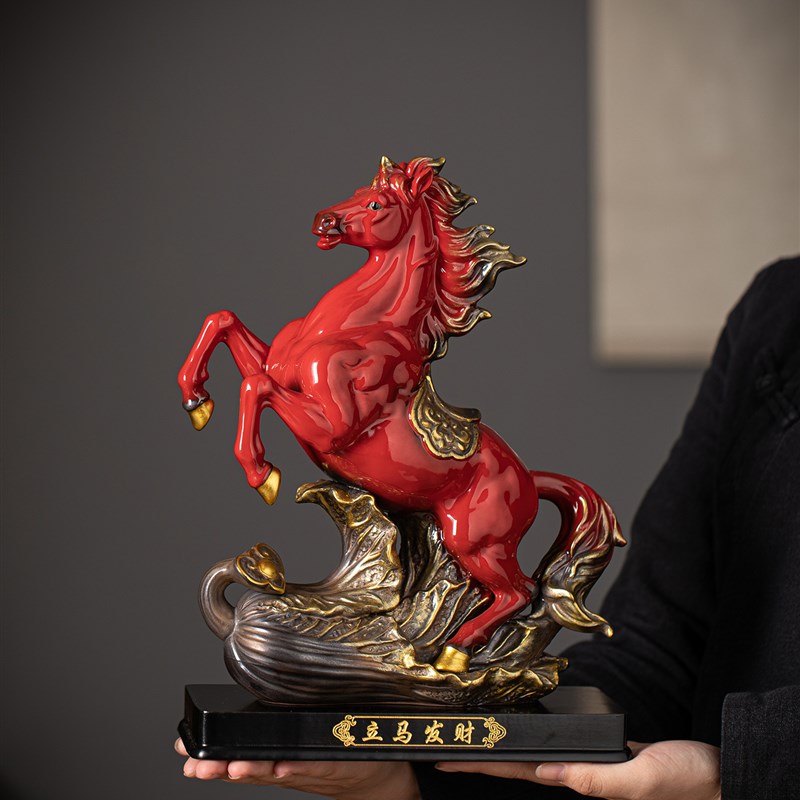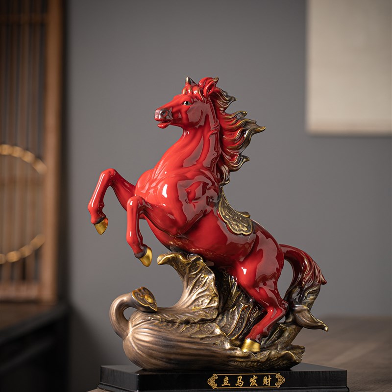 大型陶瓷马饰品招财客厅办公桌B面装饰红马工艺品生肖马走向成功