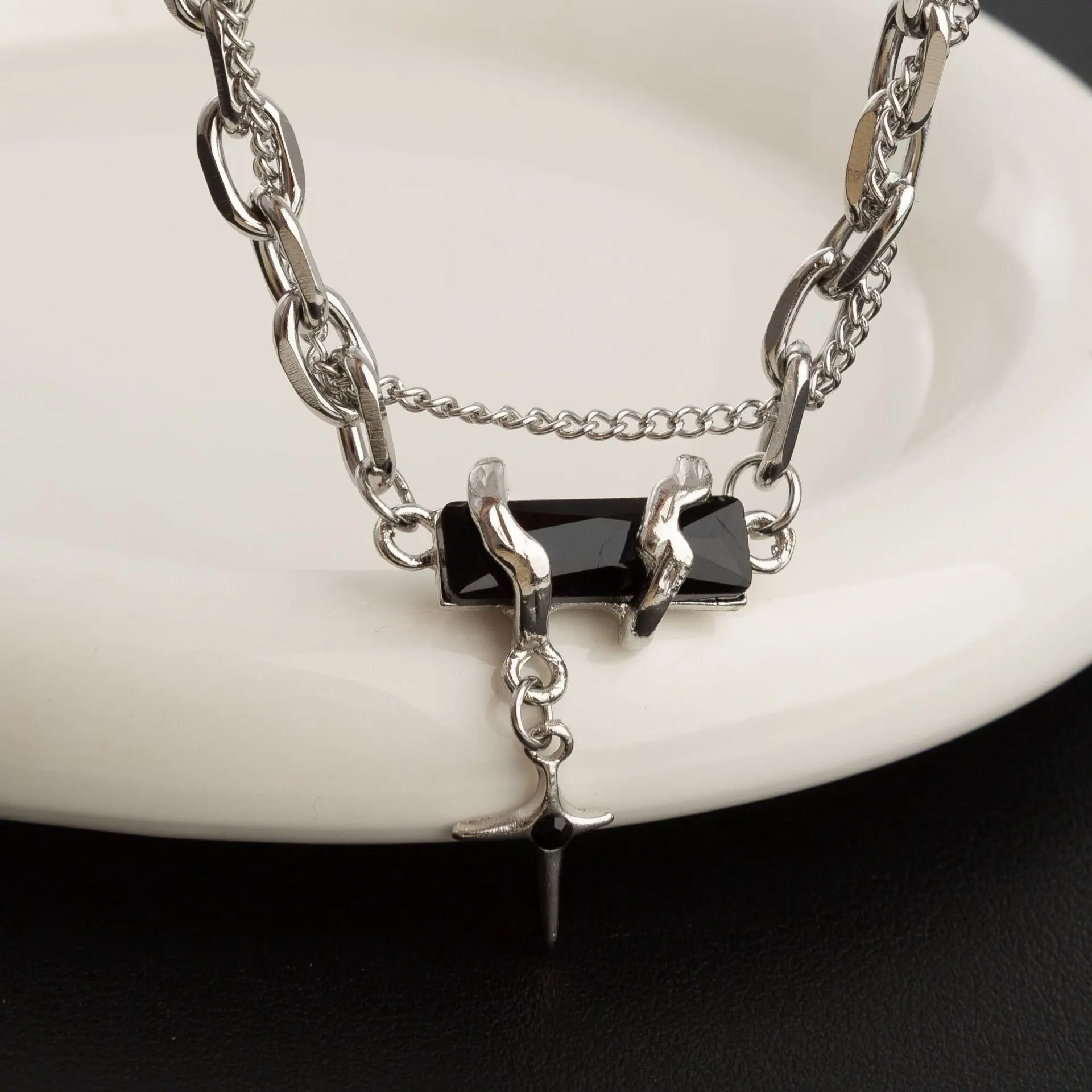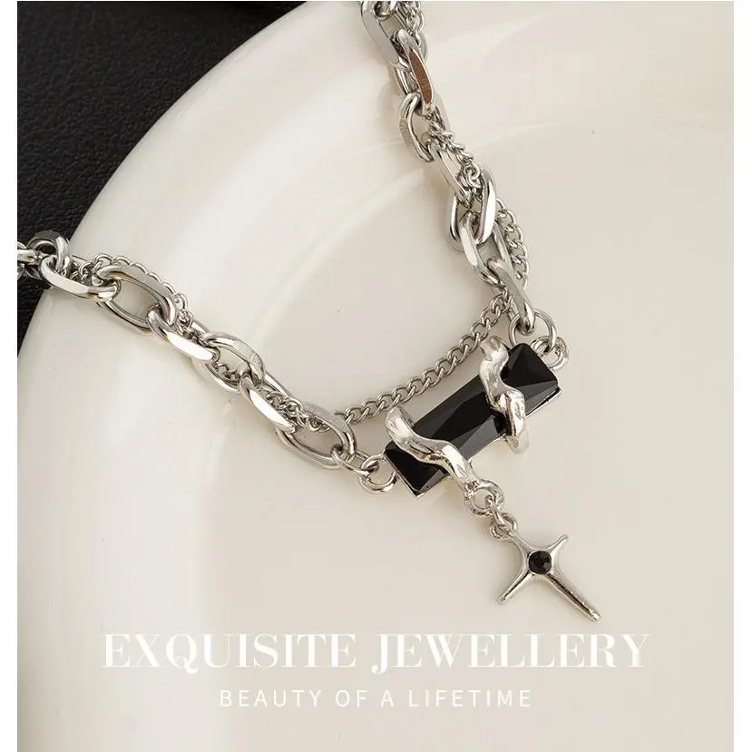 小众设计高级感黑色芒星项链女嘻哈个性锁骨链钛钢不掉色配饰男