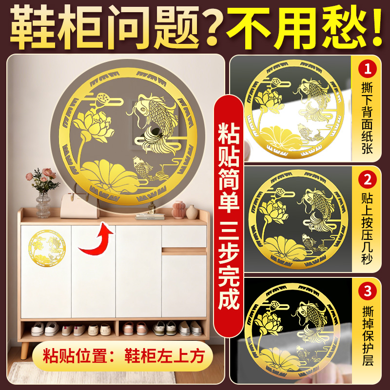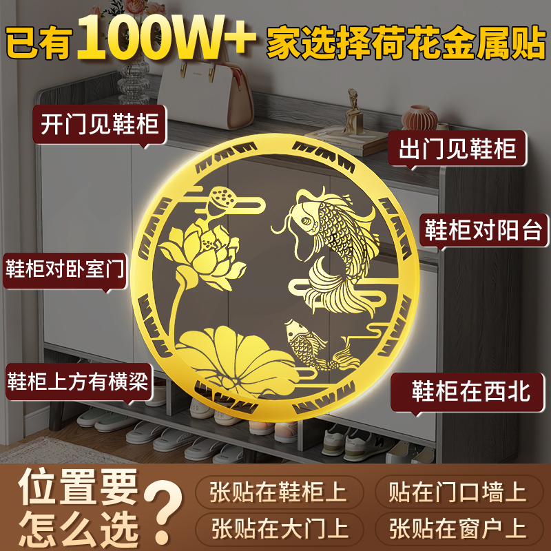荷花鲤鱼净秽图卫生间开门见鞋柜金属贴锦鲤莲花贴纸厕所化污窗户