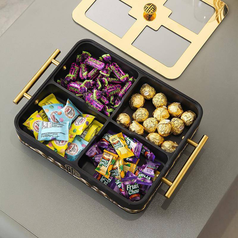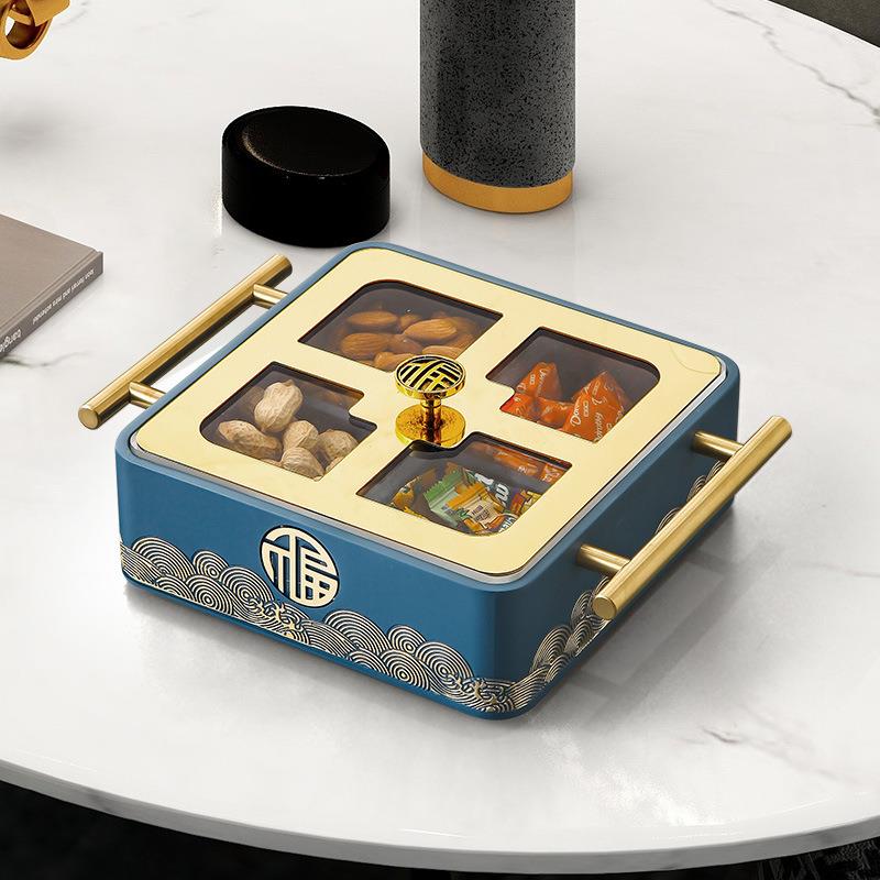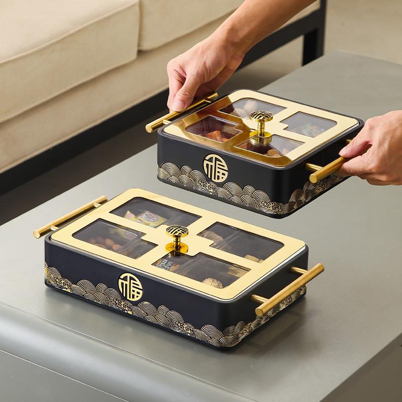 2023过年干果盘轻奢高档家用客厅茶几摆件新中式新款四宫格坚果盒