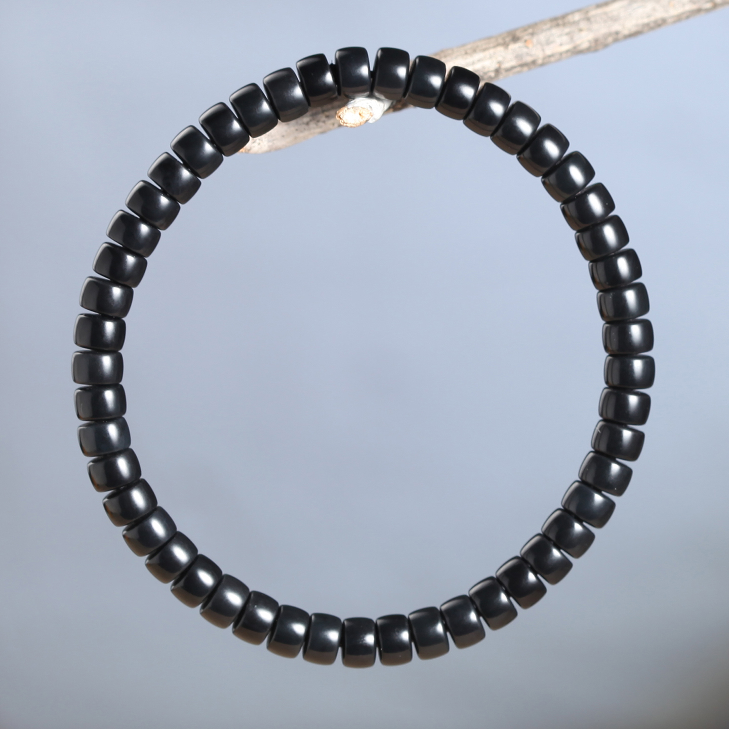 新疆和田玉墨玉直切药片珠6.2mm手串极限弧黑羊脂手链玉佩将将
