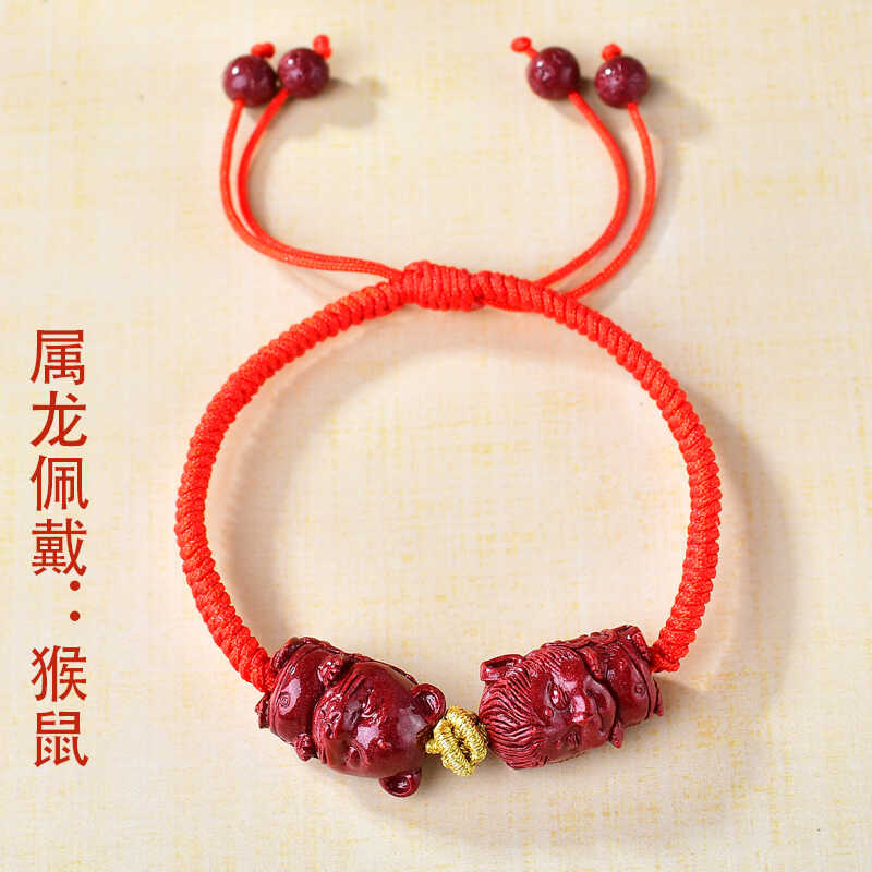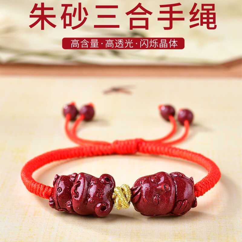 天然朱砂生肖属龙本命年猴鼠三合手链正宗金刚结男女平安手绳新款
