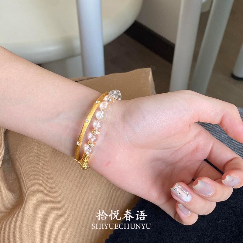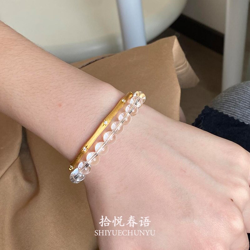 小灯泡清冷感白水晶锤纹盘缠手串轻奢高级感气质手饰女送礼物