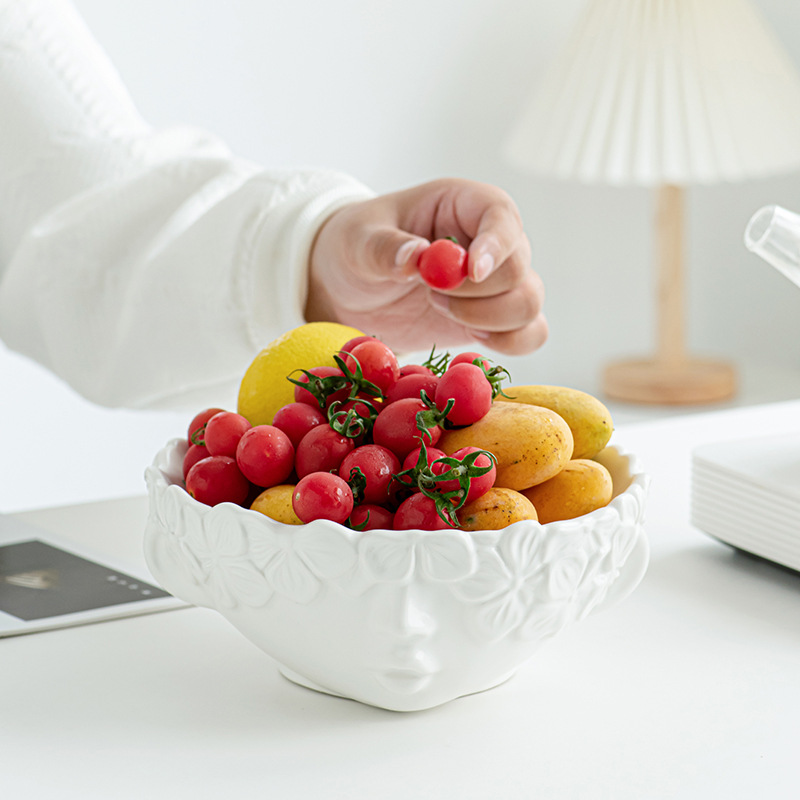 现代简约创意设计感人脸陶瓷果盘托盘白色客厅餐厅桌面装饰品摆件