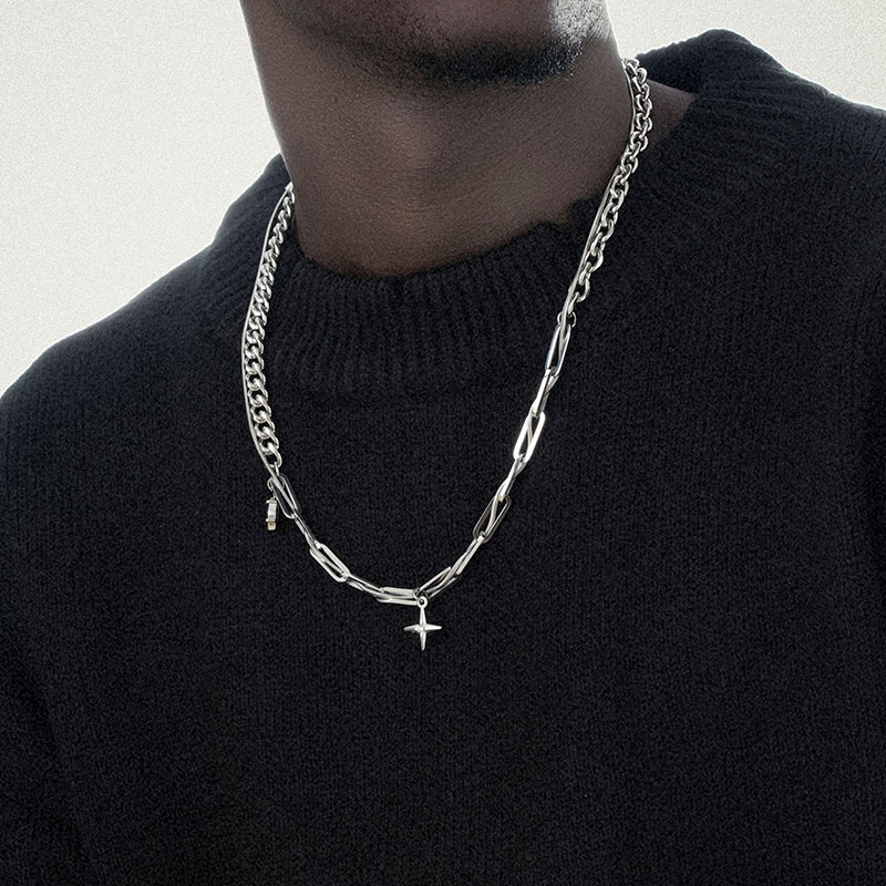ACITY喜城轻奢星芒缠绕叠戴项链男士十字星吊坠锁骨链女痞帅颈链