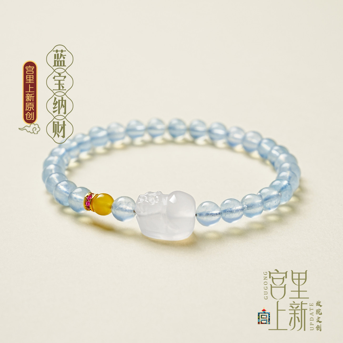 宫里上新海蓝宝手串女天然正品蓝色水晶手链貔貅高级感母亲节礼物