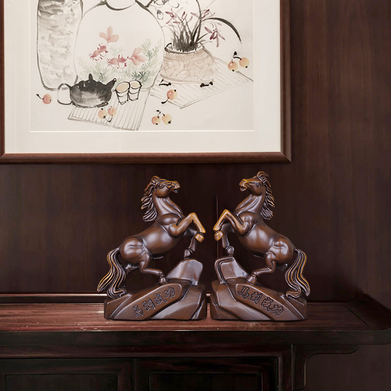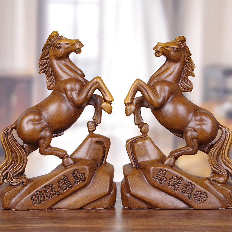 实木雕马到成功招财马摆件办公室老板桌酒柜装饰公司乔迁开业礼品