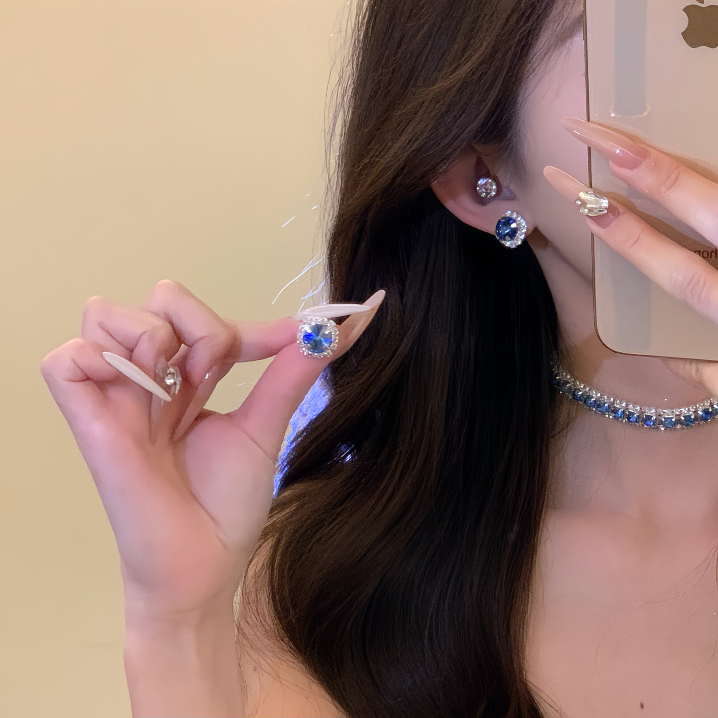 蓝调星河~千金感蓝色水钻锆石项链女轻奢宴会礼服颈链配饰锁骨链