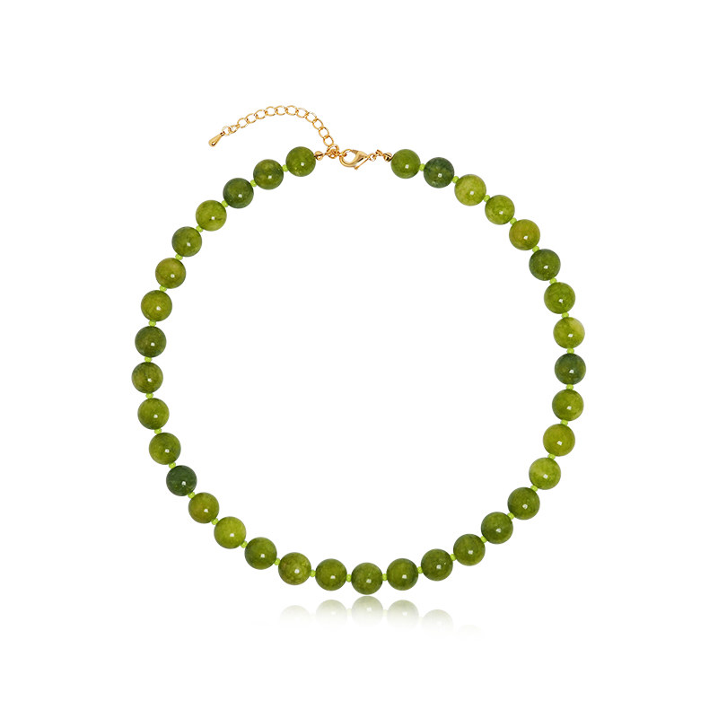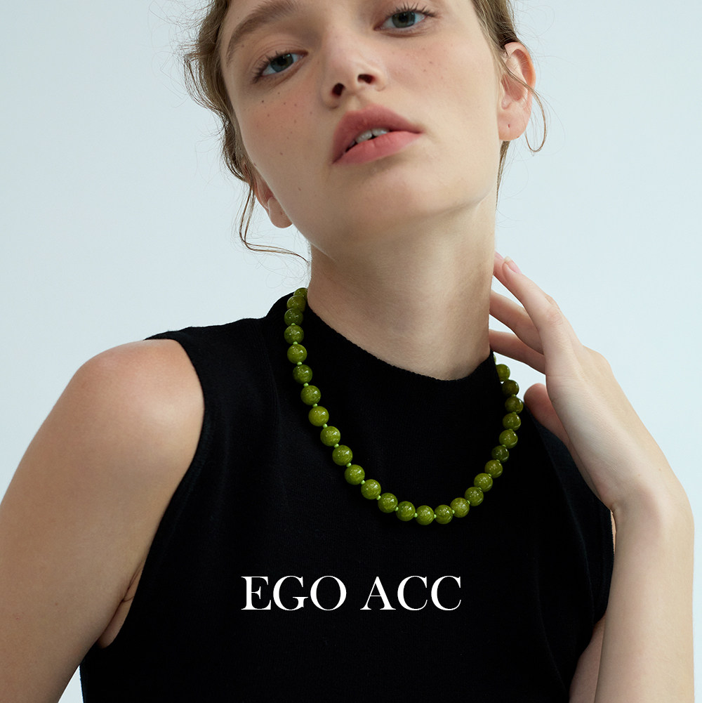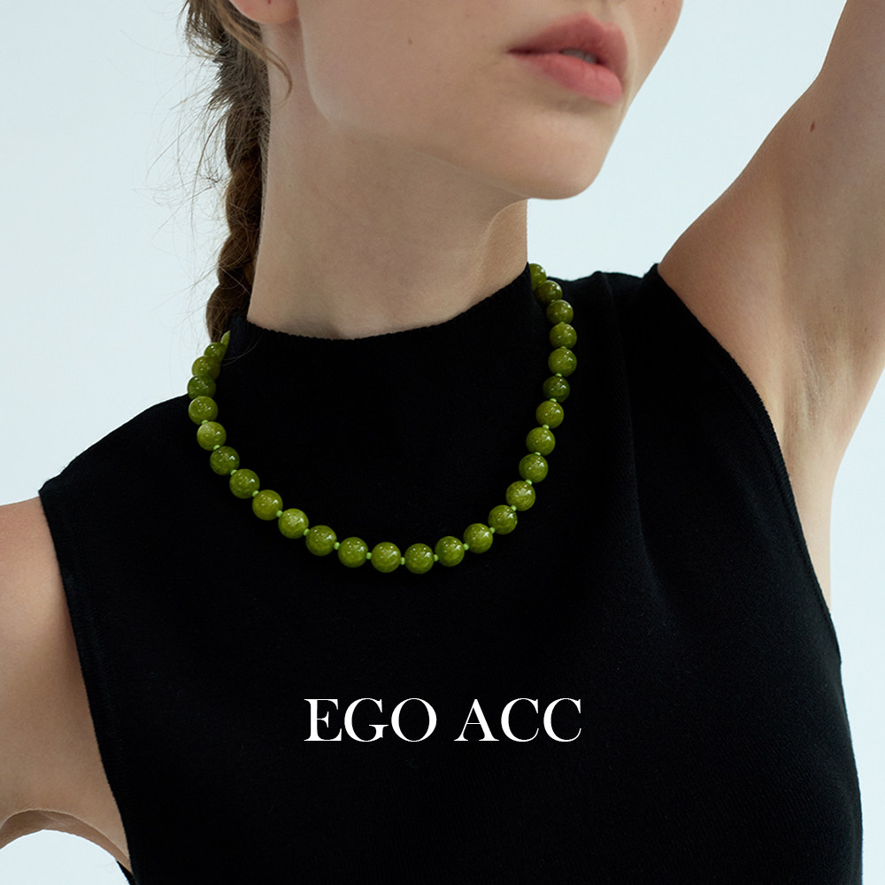 EGO ACC 小众设计复古葡萄绿色串珠项链女时髦新中式天然石毛衣链