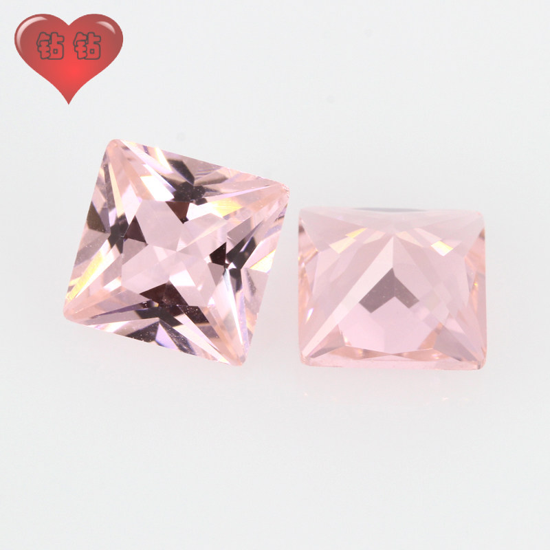 粉红色正方直角尖底人造摩根石裸石 公主方纳米西陶车花戒面45#