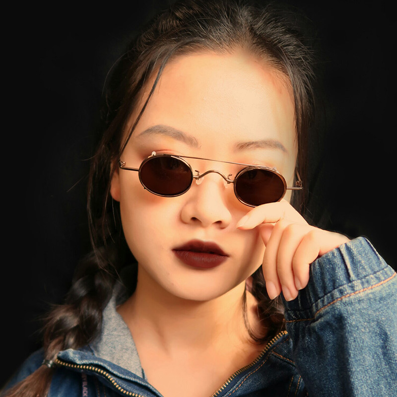 双层夹片式可拆卸墨镜复古圆框个性迷你小眼镜潮男女可配近视度数