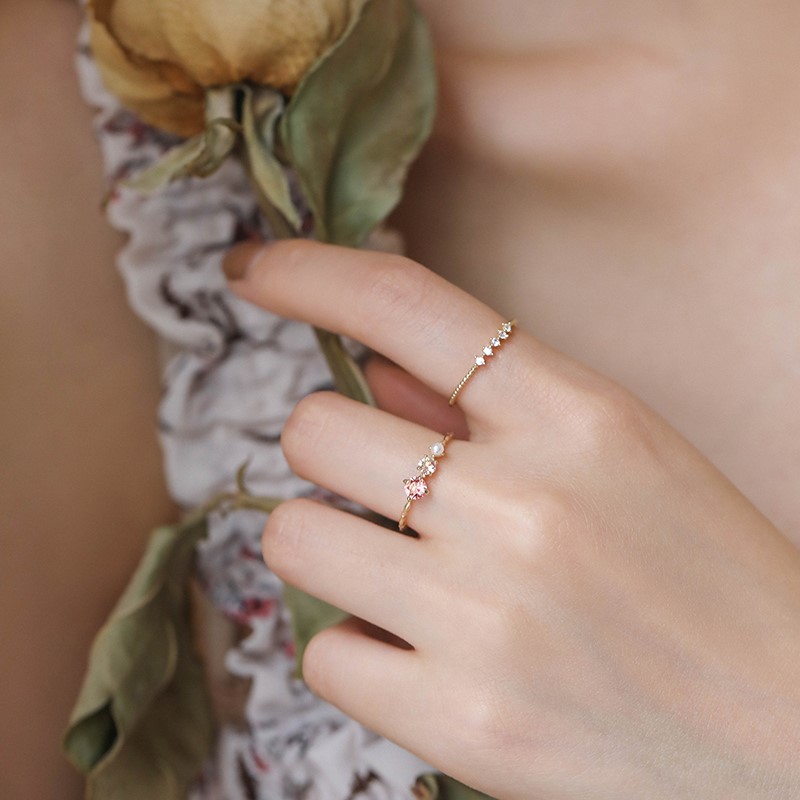 小巧精致甜美镶钻开口式两件套戒指女闺蜜对戒个性百搭学生食指戒