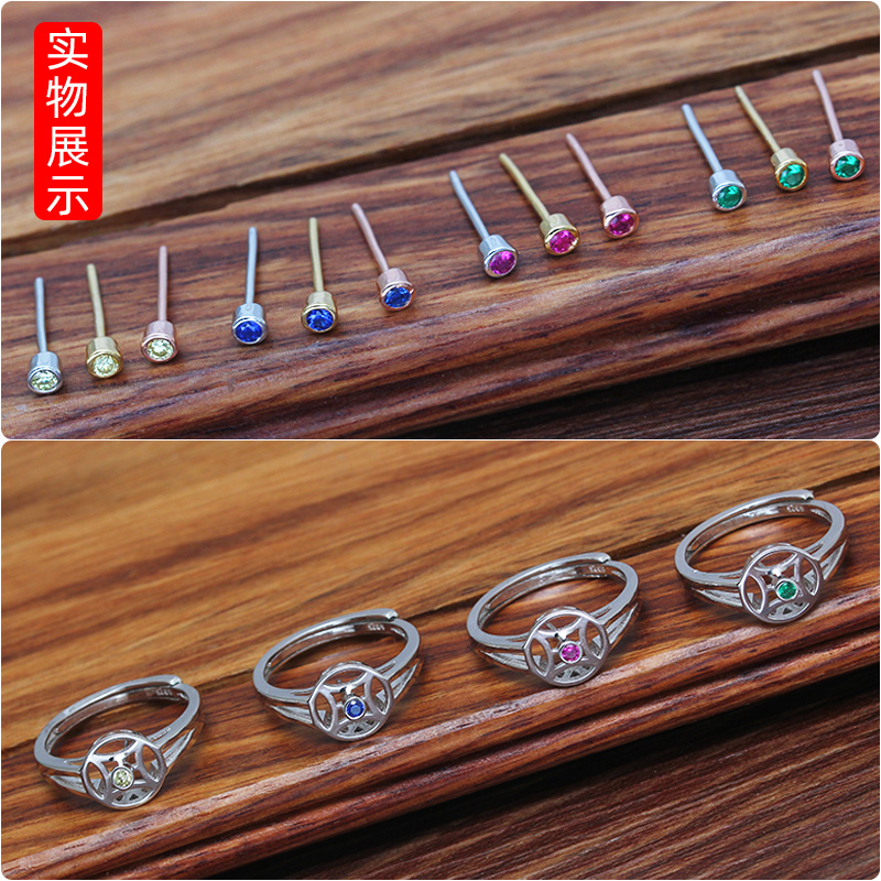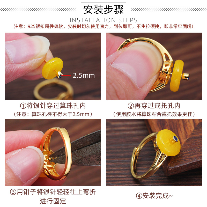 925银男女戒指空托小平安扣算盘珠隔珠戒指托diy镶嵌金刚菩提空托