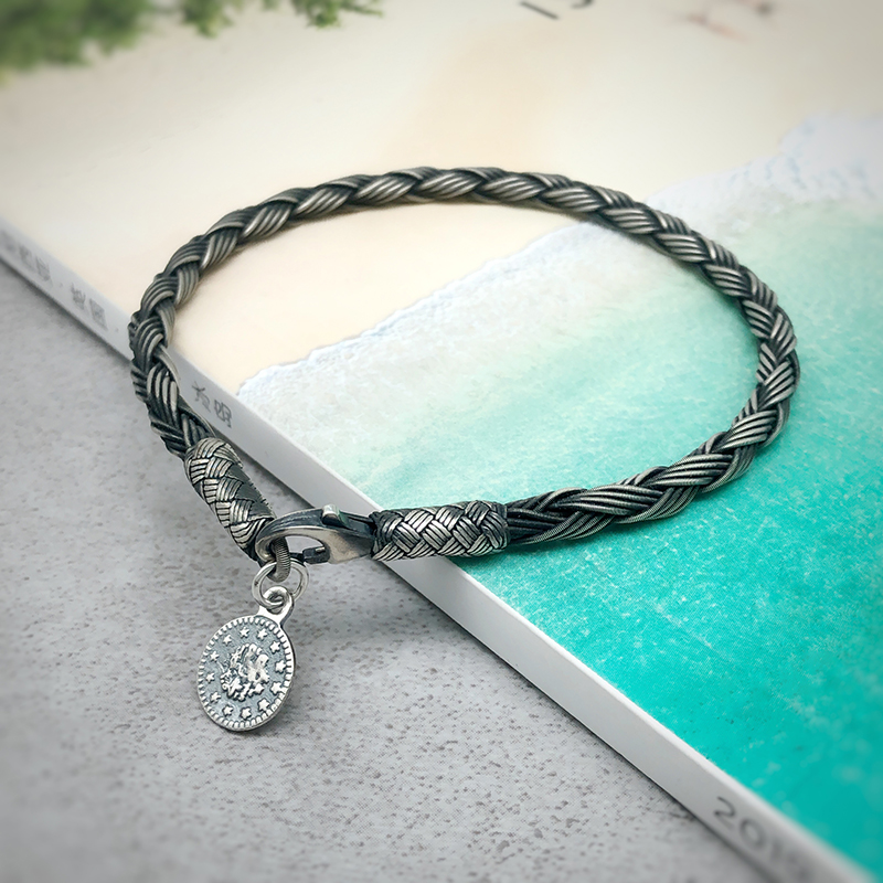 土耳其999纯银编织小众手链轻奢男手绳编织绳手饰女复古宫廷简约