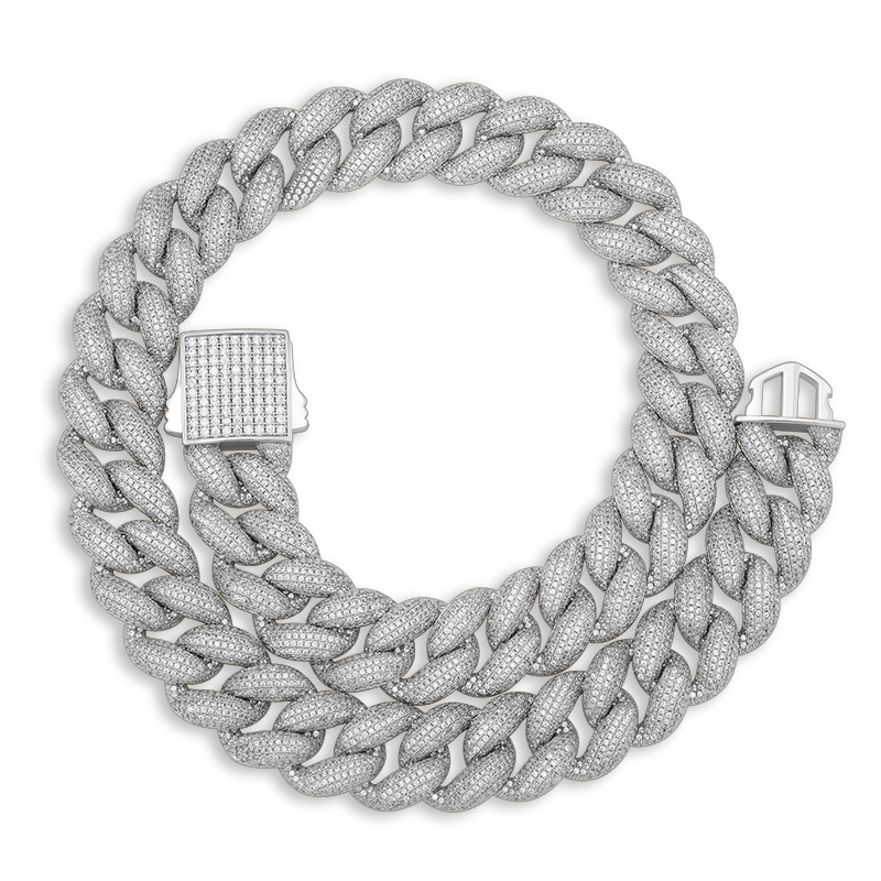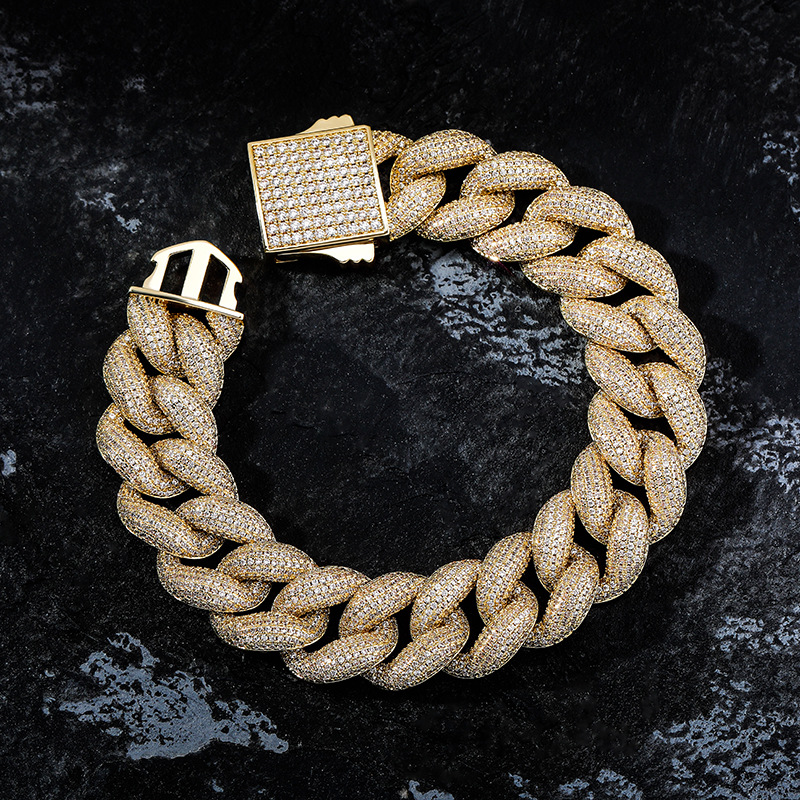 18mm欧美跨境高端嘻哈手链加密古巴链粗满锆石男士泡泡项链hiphop