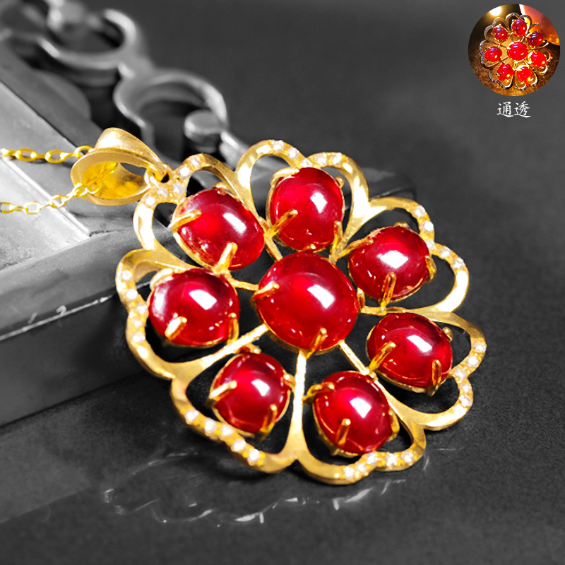 天然朱砂原石晶体吊坠软红宝石18K金镶嵌项链朱砂官方旗舰店正品