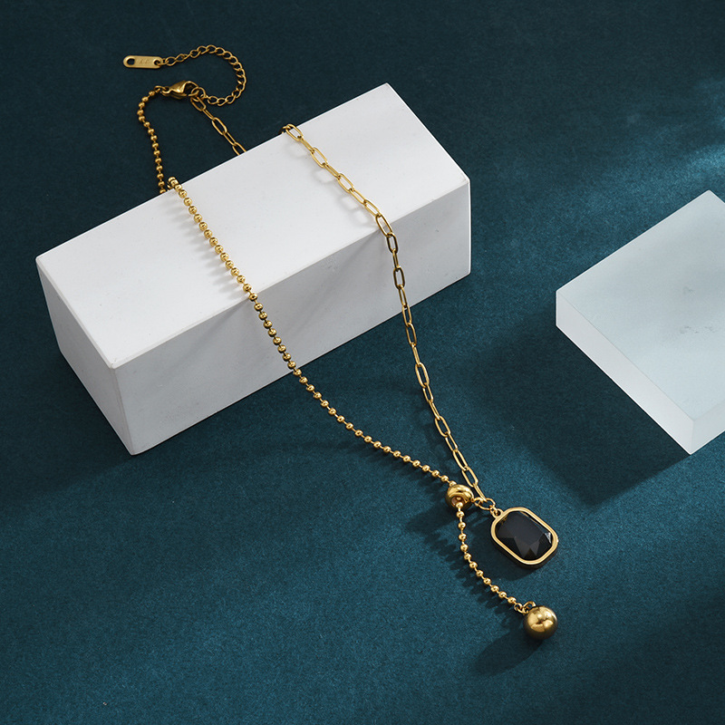 18a钛钢黑色几何吊坠项链嘻哈轻奢小众锁骨链抽拉圆珠颈链女
