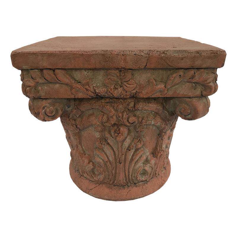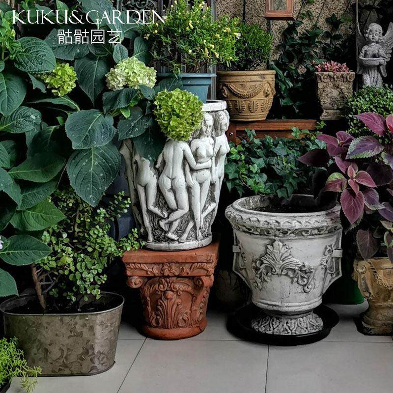 欧式罗马柱头粗陶复古做旧别墅户外装饰摆件花园庭院花盆底座摆件