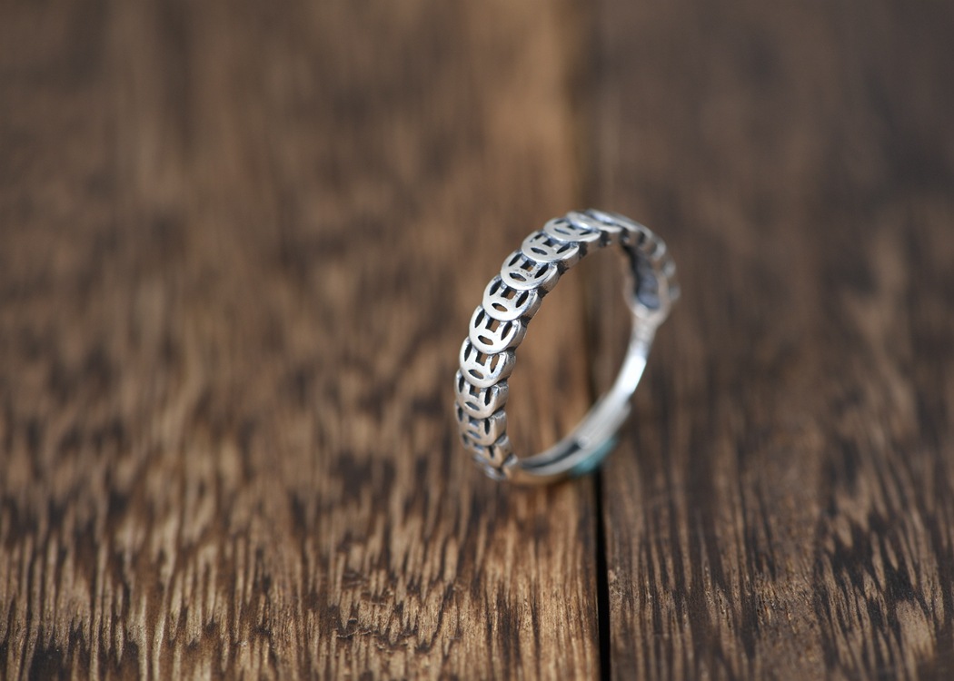 纯银S925银复古钱币铜钱银饰品戒指女款文艺食指戒指指环