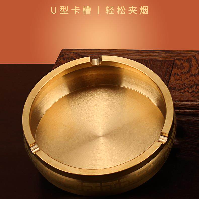 高端铜制灰缸办公室会客茶具配件家用高档酒店专用纯黄铜烟灰缸