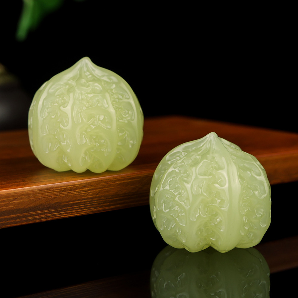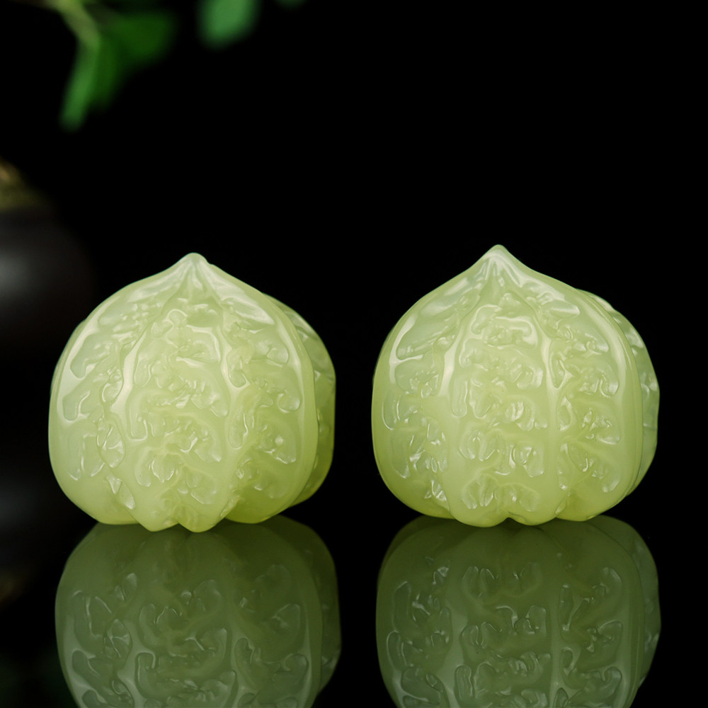 天然新疆和田玉核桃手把件健身球黄口料籽料手球玉石把玩件一对