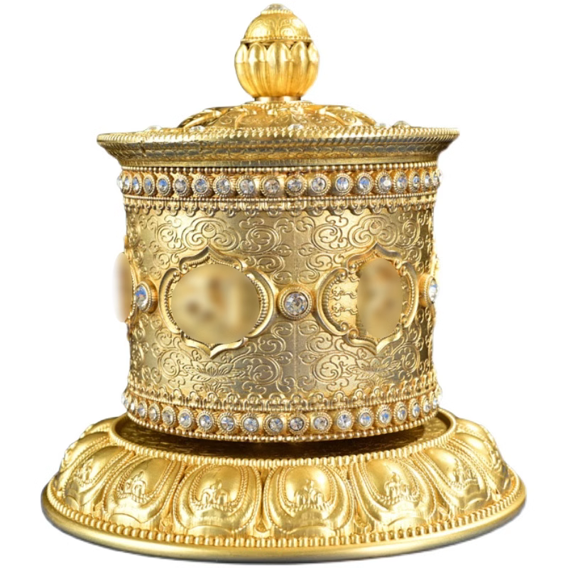 藏族纯铜车载指捻转金桶汽车车饰摆件双层浮雕转金轮家用装饰品
