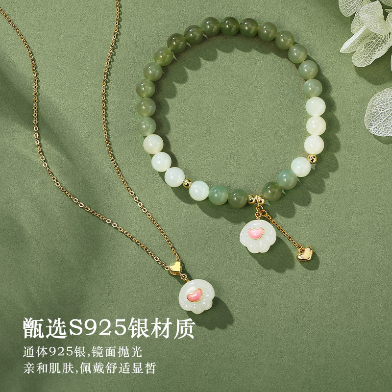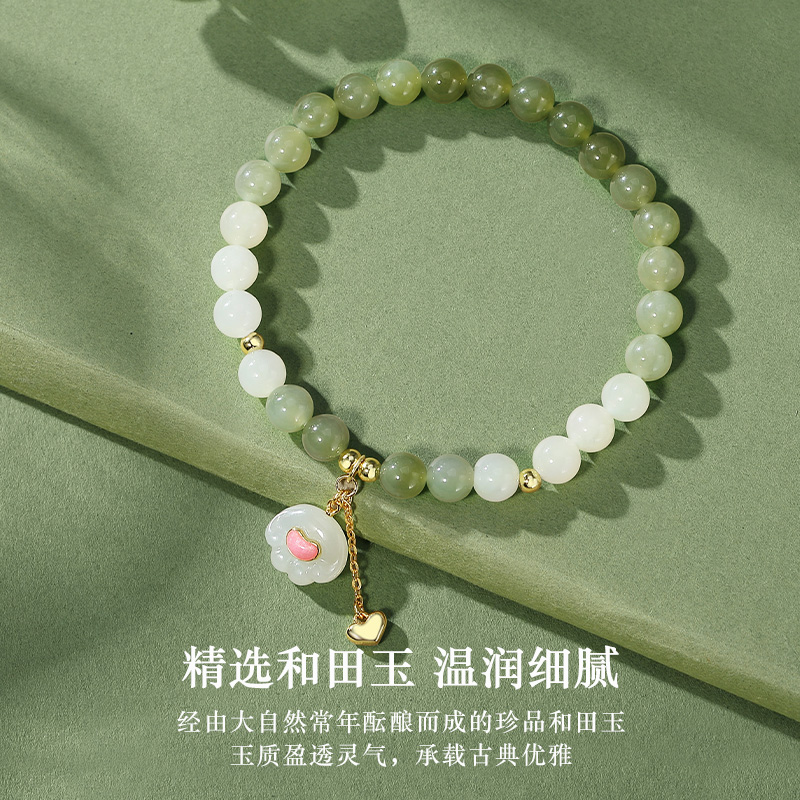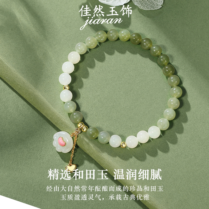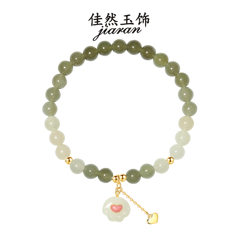佳然玉饰天然和田玉手串女生925纯银可爱软萌猫爪渐变玉石手链