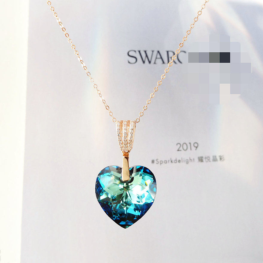 海洋之心吊坠项坠奥地利水晶项链S925纯银锁骨链闪O圆环链女首饰