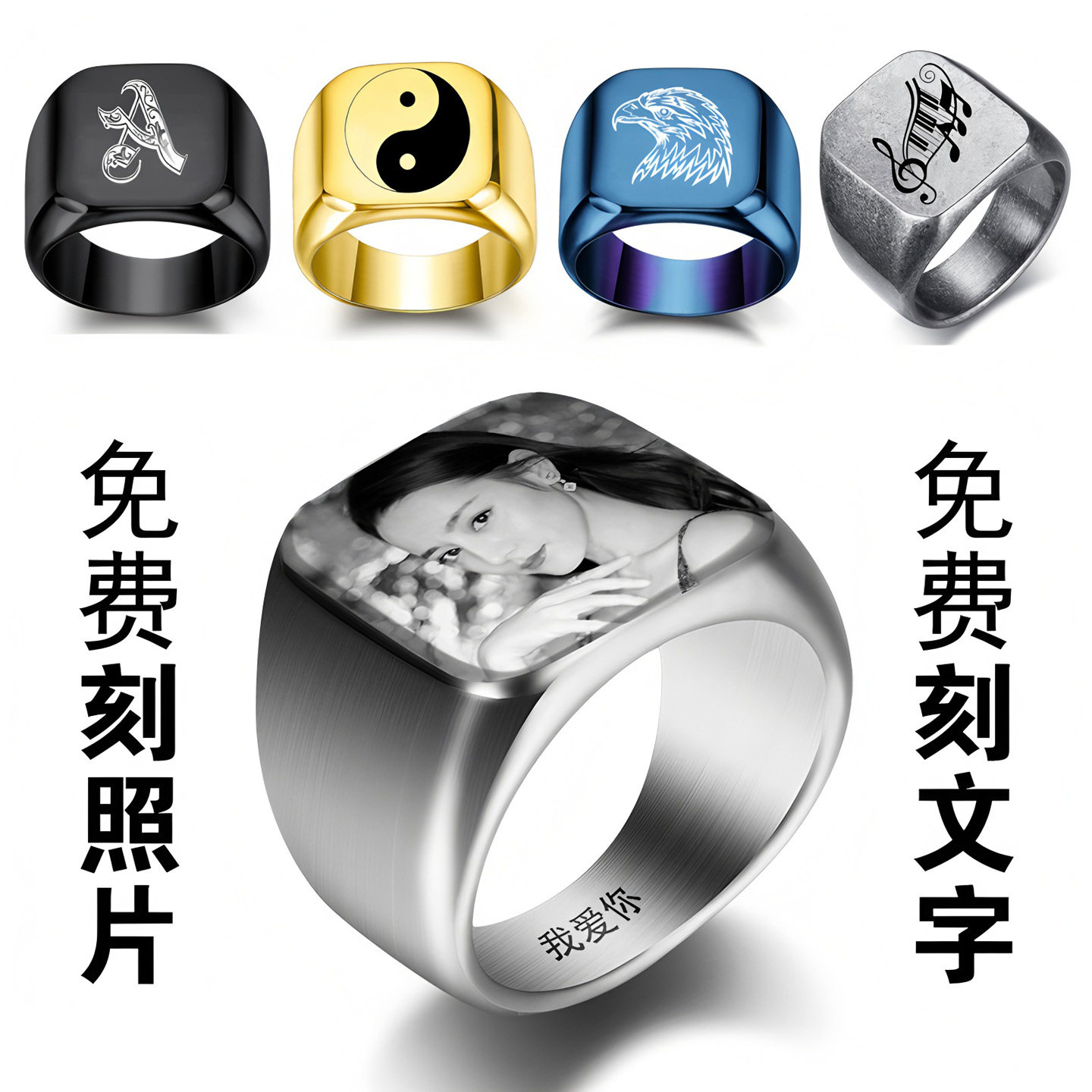 定制照片戒指男女士钛钢情侣款光面指环新款情人节纪念礼物送男友