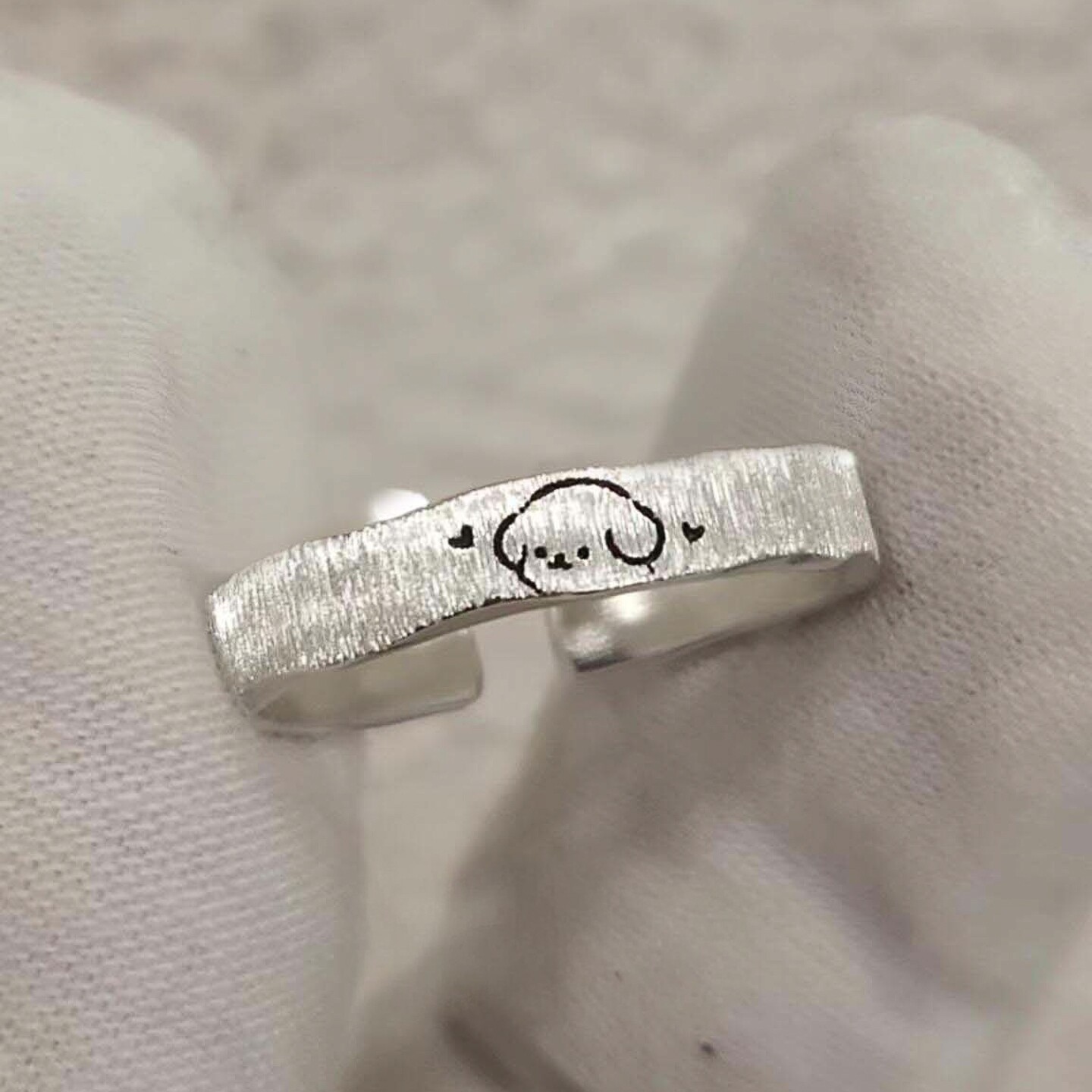 拉丝猫狗情侣戒指一对小众设计百搭可爱童趣食指戒设计感指环对戒